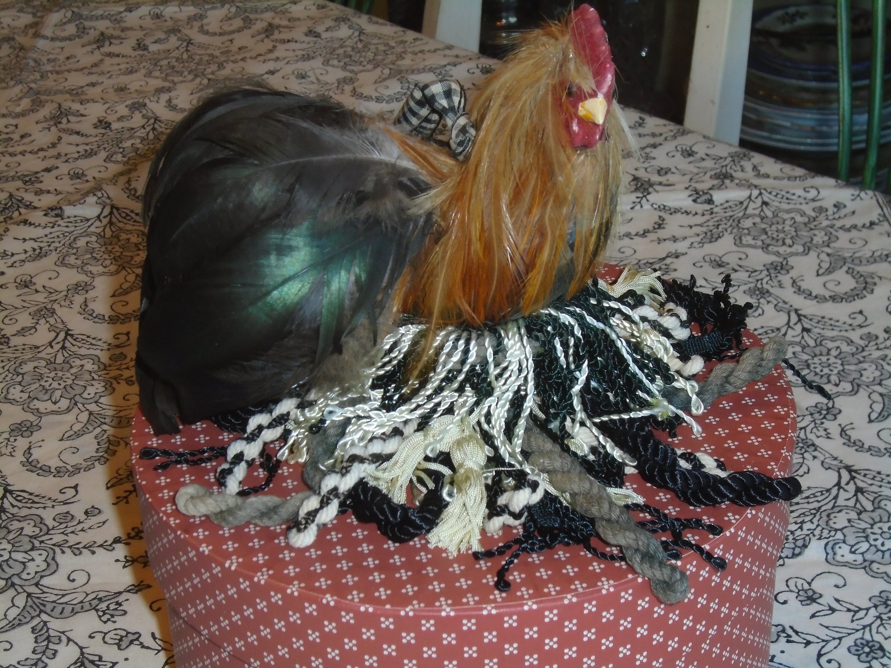 Rooster Made W Natural Feathers And Fabric Fringe Base Etsy